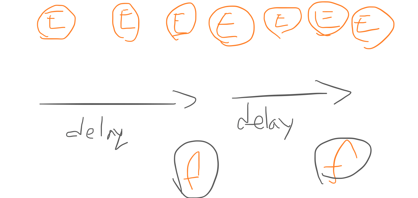 scroll, resize, input, mousemove같은 이벤트는 짧은 시간에 연속적으로 발생합니다. 이러한 이벤트에 바인딩한 이벤트 핸들러는 과도하게 호출되어서 성능에 문제를 일으킬 수도 있어요 디바운스는 짧은 시간 간격으로 이벤트가 연속해서 발생하면 이벤트 핸들러를 호출하지않다가.. 일정 시간이 경과한 이후에 이벤트 핸들러가 한번만 호출 되도록 합니다. 대충 그림으로 보면 저런 느낌 그리 어렵진 않은 느낌이네요 하지만 구현은 조금 극혐임 input 이벤트는 사용자가 텍스트 입력 필드에 값을 입력할 때마다 연속해서 발생합니다. 만약 값을 입력할때마다 ajax요청을 보내면 너무 비효율적이니 일정시간동안 값을 입력하지 않으면 입력 완료로 취급하고자 한다.